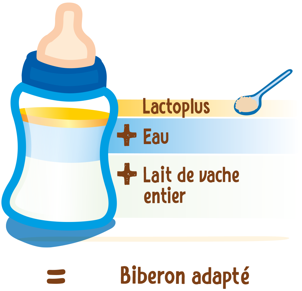 C'est pour cela que Nestlé a développé Lactoplus : un complément au lait de vache à base de céréales. Le mélange lait entier + eau + Lactoplus apporte à votre enfant des nutriments importants, tels que des vitamines A & C, du fer, du zinc et de l'iode. Idéal pour l'introduction en douceur du lait de vache dès 12 mois !