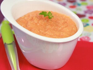 Mit Hilfe eines Mixers zerkleinern, bis ein sämiges Püree entsteht, Rapsöl beigeben. Falls nötig, noch etwas Wasser zugeben und mixen, um die gewünschte Textur zu erhalten. Vor dem Servieren Temperatur überprüfen.
